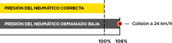 La distancia de frenado está relacionada con la presión de los neumáticos. A una velocidad de manejo de 100 km / h, la distancia de frenado con neumáticos correctamente inflados será de 40 m en comparación a 42.4 m con neumáticos desinflados. Por lo tanto, el rendimiento se mejora en casi un 6%, lo que equivale a 2,4 m.